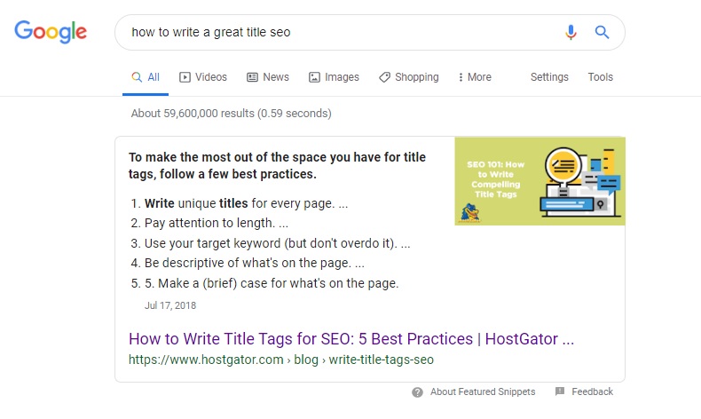 A title tag is a short and sweet way for website designers to tell search engines (and readers) what the page is about. This being the case, you can now understand why title tags are one of the most important tools for on-page ranking.