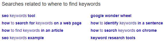 Unlike the Google Keyword Planner, the Google Related Searches column often has different keyword ideas.