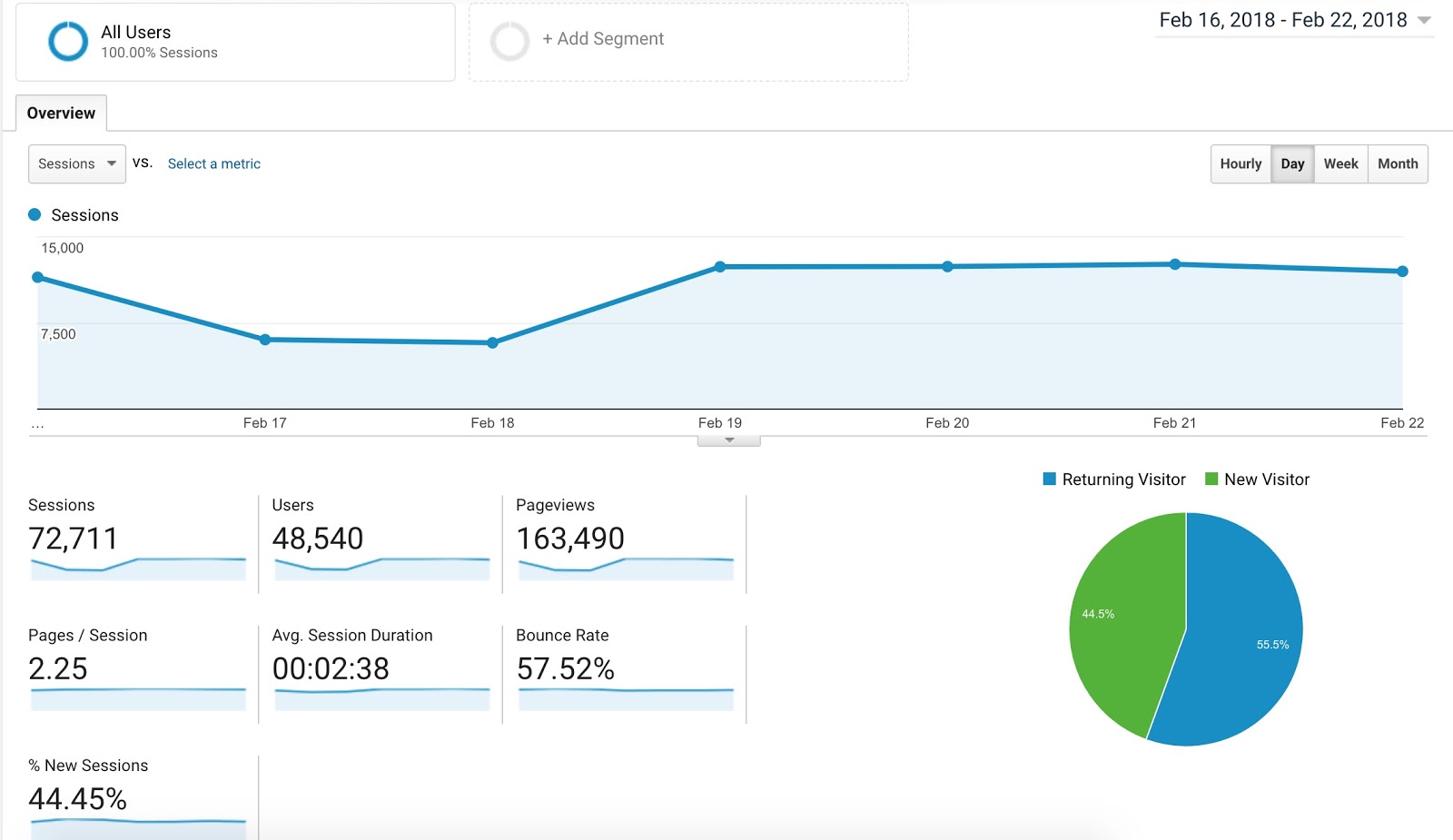 - Sessions — the total number of sessions for the selected time period.