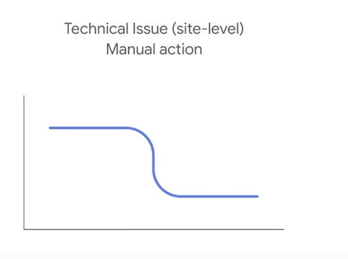 In case your website is hit with page-level technical issues, the graph in the Google Search Console Performance reports might look similar to this: