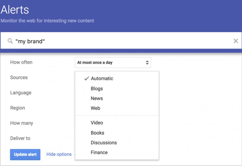 Google Alerts allows you to set up keywords and phrases to monitor. Whenever something is indexed by Google that contains your keywords or phrase, you’ll instantly get an email.